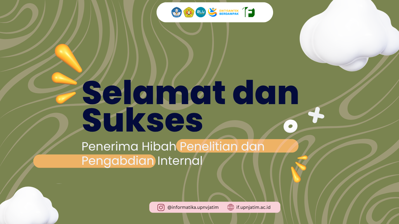 UPN “Veteran” Jawa Timur melalui Fakultas Ilmu Komputer, khususnya Departemen Informatika, mengucapkan selamat dan sukses kepada para dosen yang telah berhasil meraih hibah penelitian dan pengabdian internal tahun ini. Pencapaian ini menjadi bukti nyata komitmen sivitas akademika dalam meningkatkan kualitas riset serta kontribusi nyata kepada masyarakat.